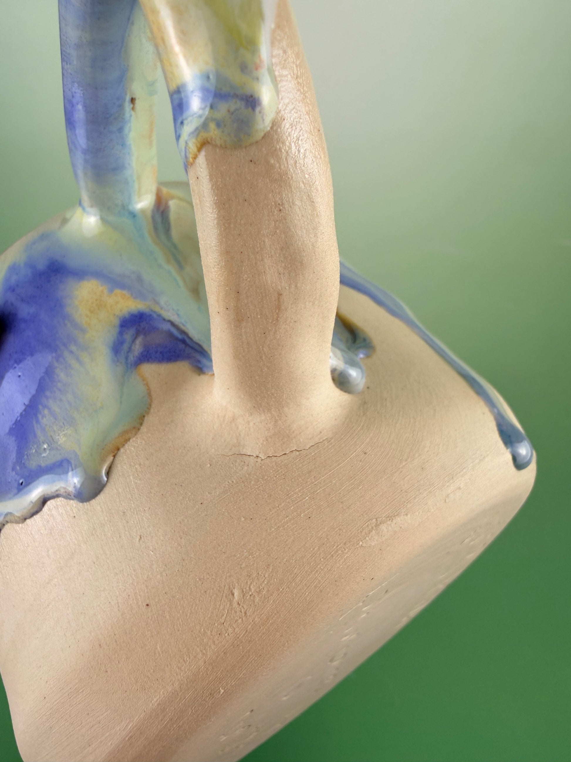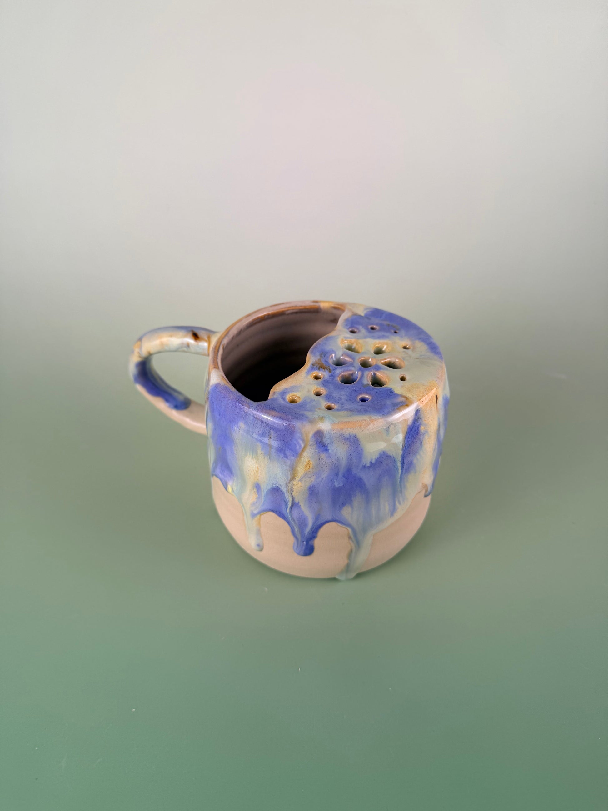 Food safe and dishwasher safe. 4 inches W, 3.5 inches H. Discounted due to hairline cracks on the bottom of the handle, it won’t cause any issues but if it does I’ll replace it for free!