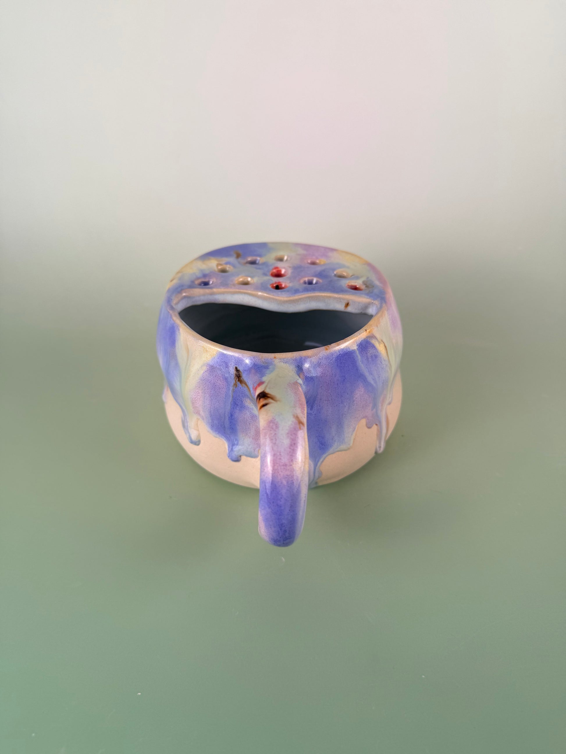 Food safe and dishwasher safe. 4 inches W, 3 inches H. *glaze ran on the bottom so it doesn’t sit completely flat but doesn’t effect functionality*