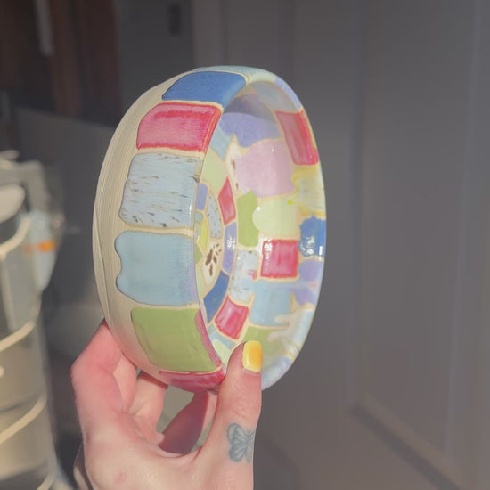 5.5 inches W, 2 inches H. Food safe and dishwasher safe.