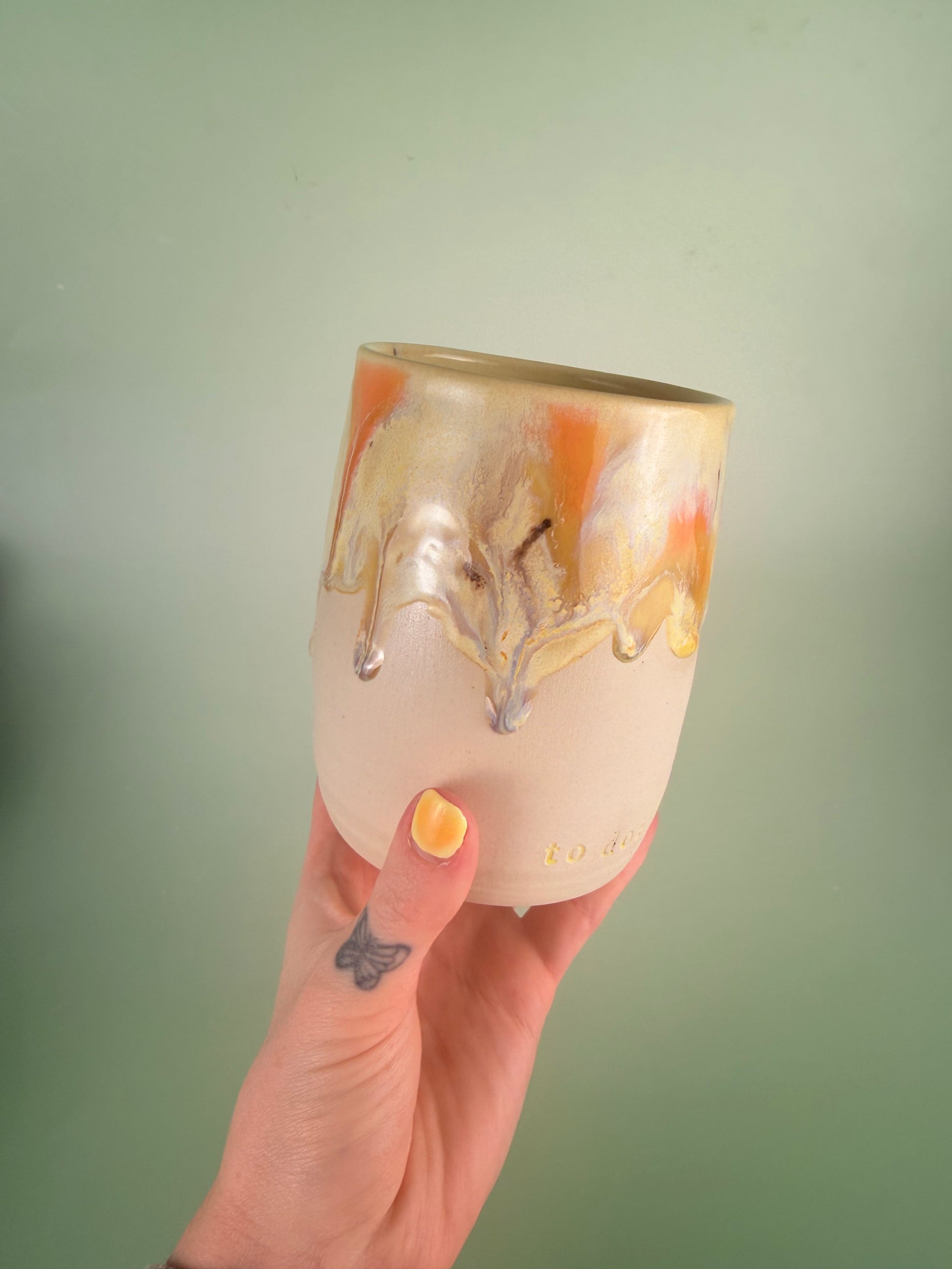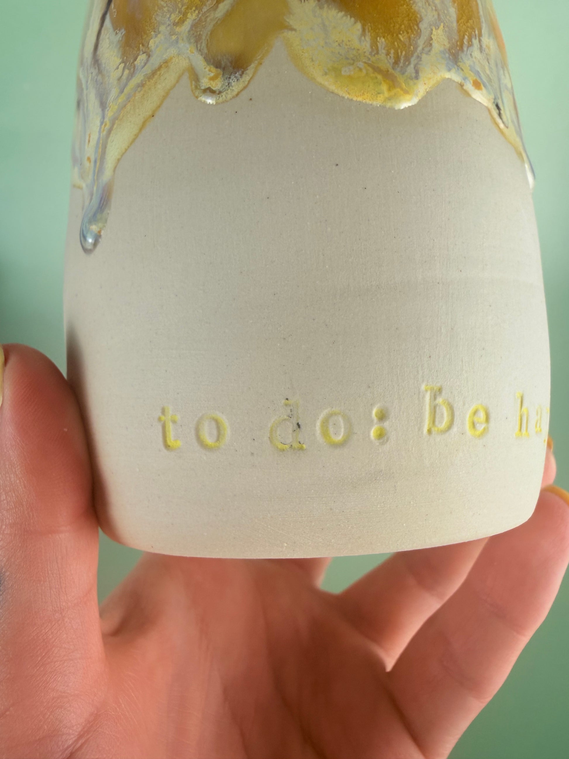 Yellow drippy “to do: be happy”